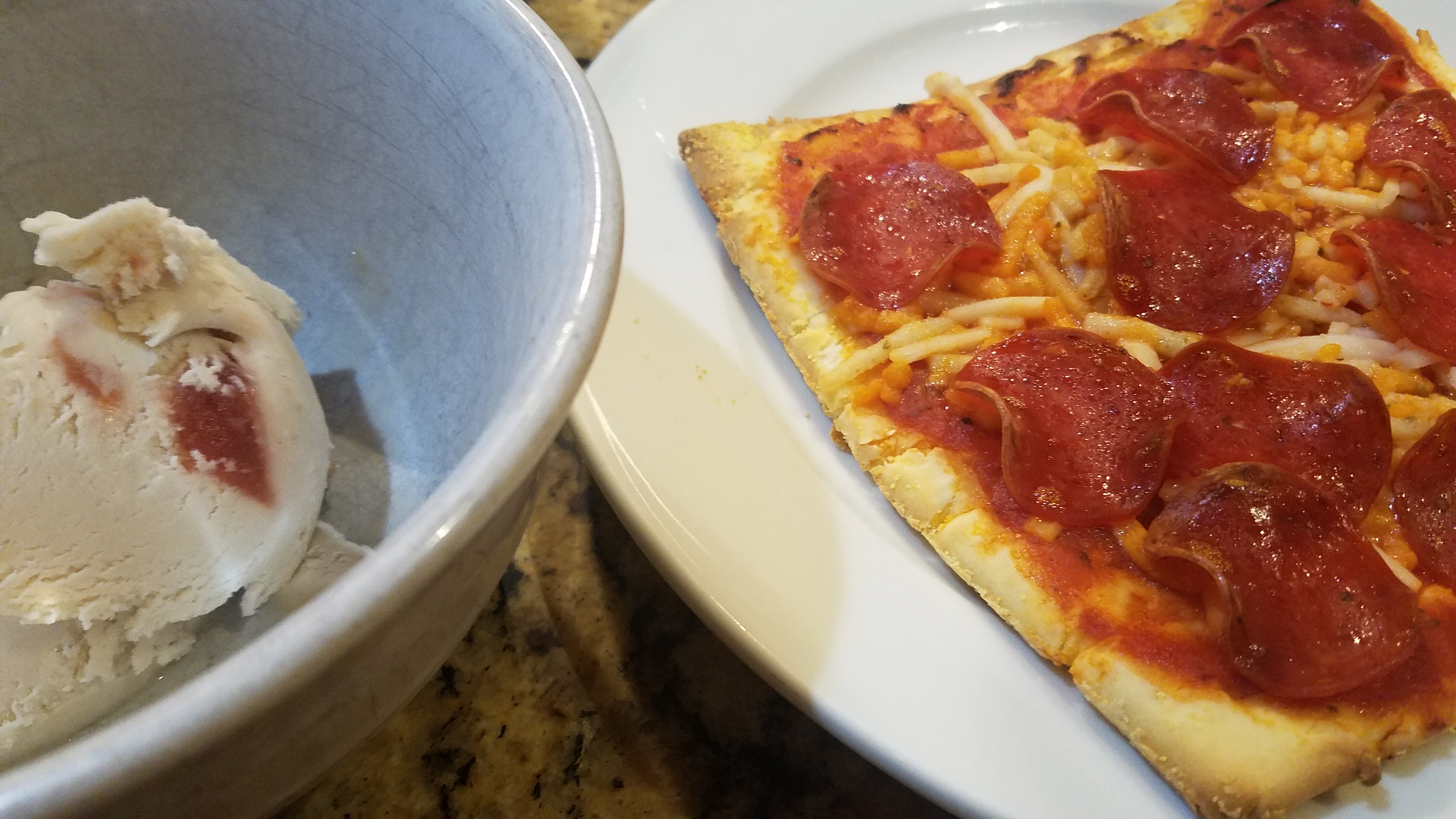 Yes it’s late, at least in this part of the world! But I was hungry! Strawberry rice dream ice cream, Yes! Pepperoni pizza, Yes! All dairy and gluten free, Yes! So untrue that we who have to stay away from gluten and dairy have to eat gross stuff…no! This is so good,